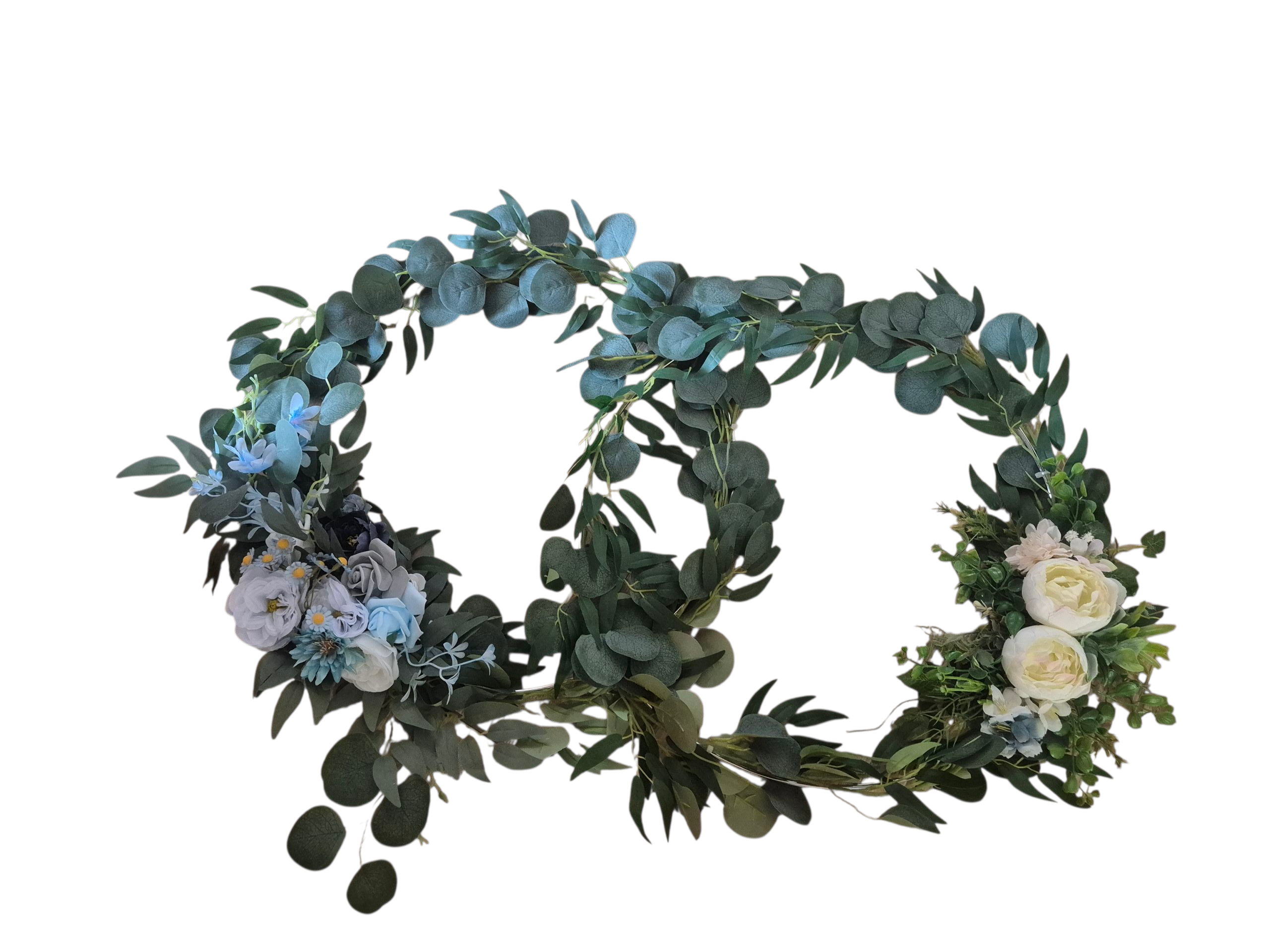 Állvány, háttér anyag, LED világítás és felül virág dekoráció. Mérete: 400x190 cm